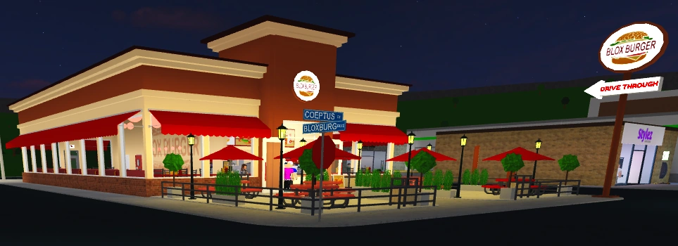 - The previous burger restaurant chain, Bloxy Burgers, was destroyed by a stray firework and was temporarily replaced with a food truck before the brand was entirely replaced by Blox Burgers.